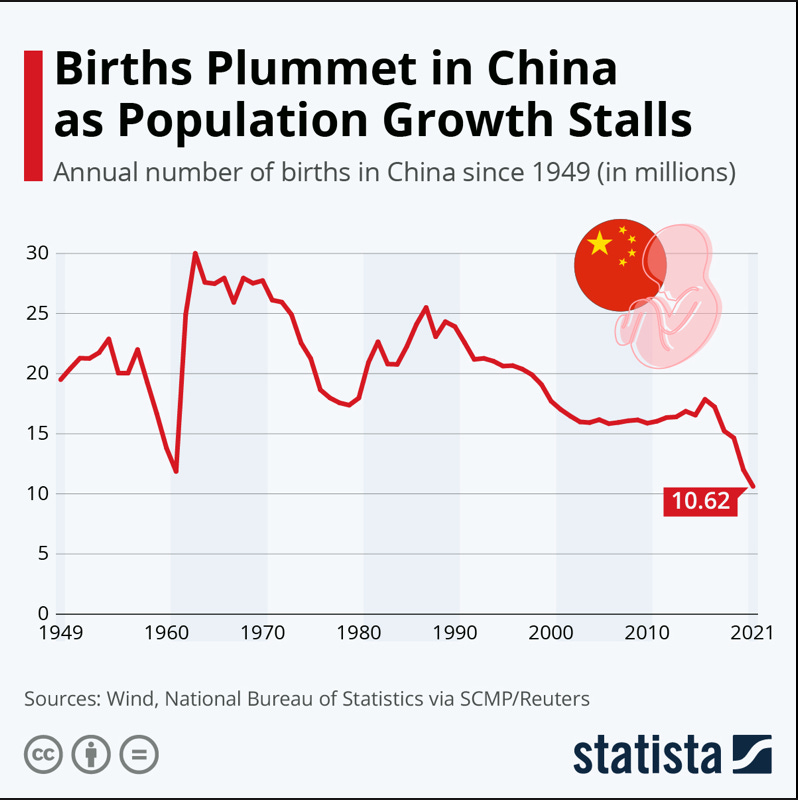 Anyone who has been paying attention knows why the CCP wants women to forget about their own careers and independence to focus on the family. It is the reason why China’s problems are set to get a lot more serious as well as an example of the massive downsides of a centrally controlled system dictating what individuals should do. The slow-moving but primary issue facing the CCP is demographics and the falling of the Chinese birth rate.